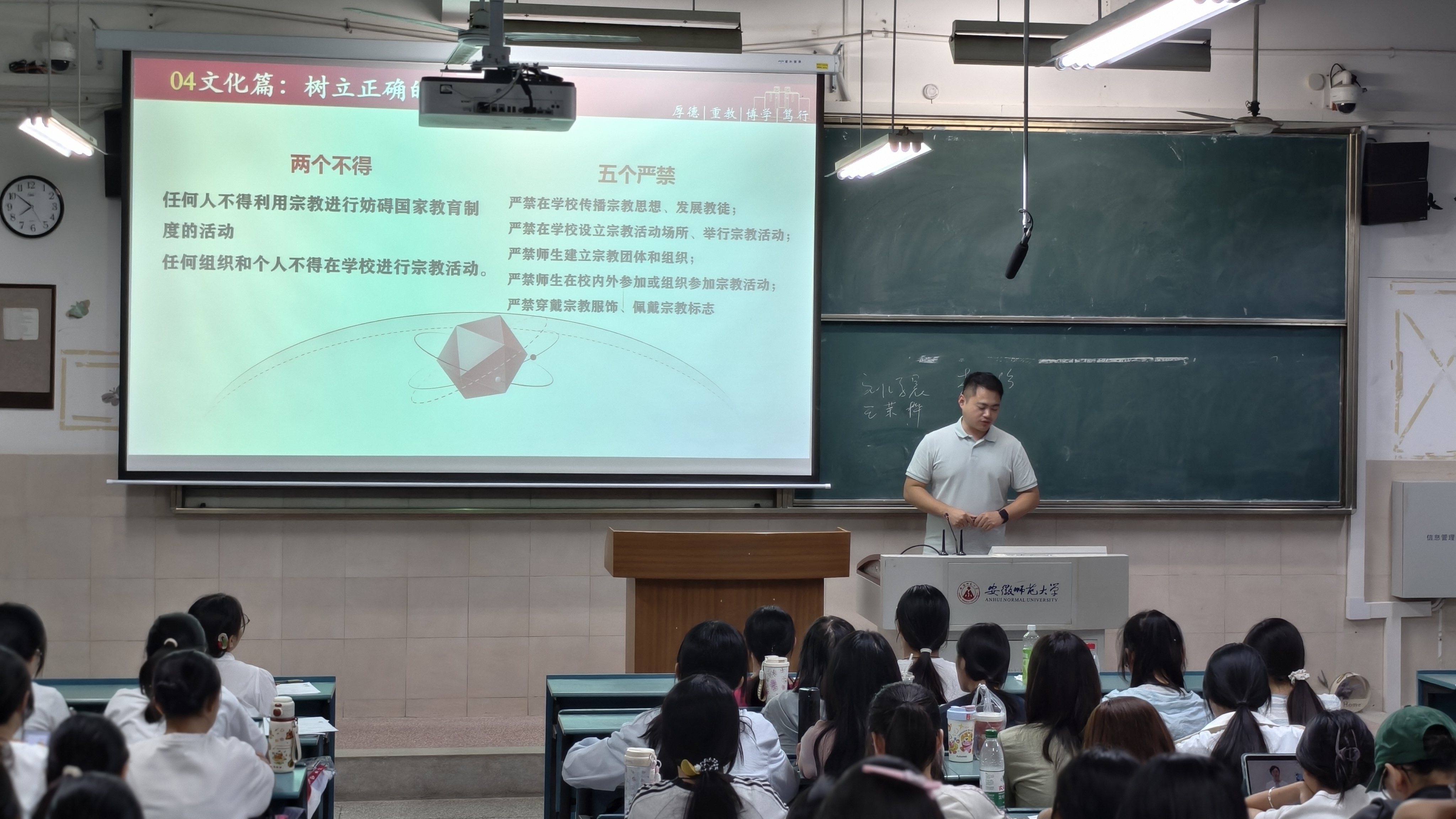 刘成俊重点解读了“两个不得”和“五个严禁”的具体要求。同学们表示,将以此次主题班会为契机,深入学习相关政策,自觉践行正确宗教观,在校园生活中站稳立场,维护校园的科学、文明、和谐氛围。