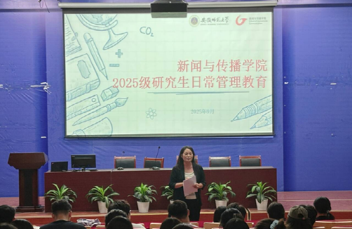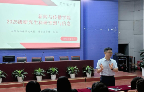 本网讯 (新闻与传播学院 杨秋慧 谢梦婷) 秋光为序,筑梦启航;新学肇始,万象更新。9月22日晚,新闻与传播学院2025级研究生入学教育主题班会在教学楼2010307举行。副院长秦枫、研工办秘书崔霞、辅导员魏岚及学院研会成员出席会议并发言,全体2025级全体研究生参加。