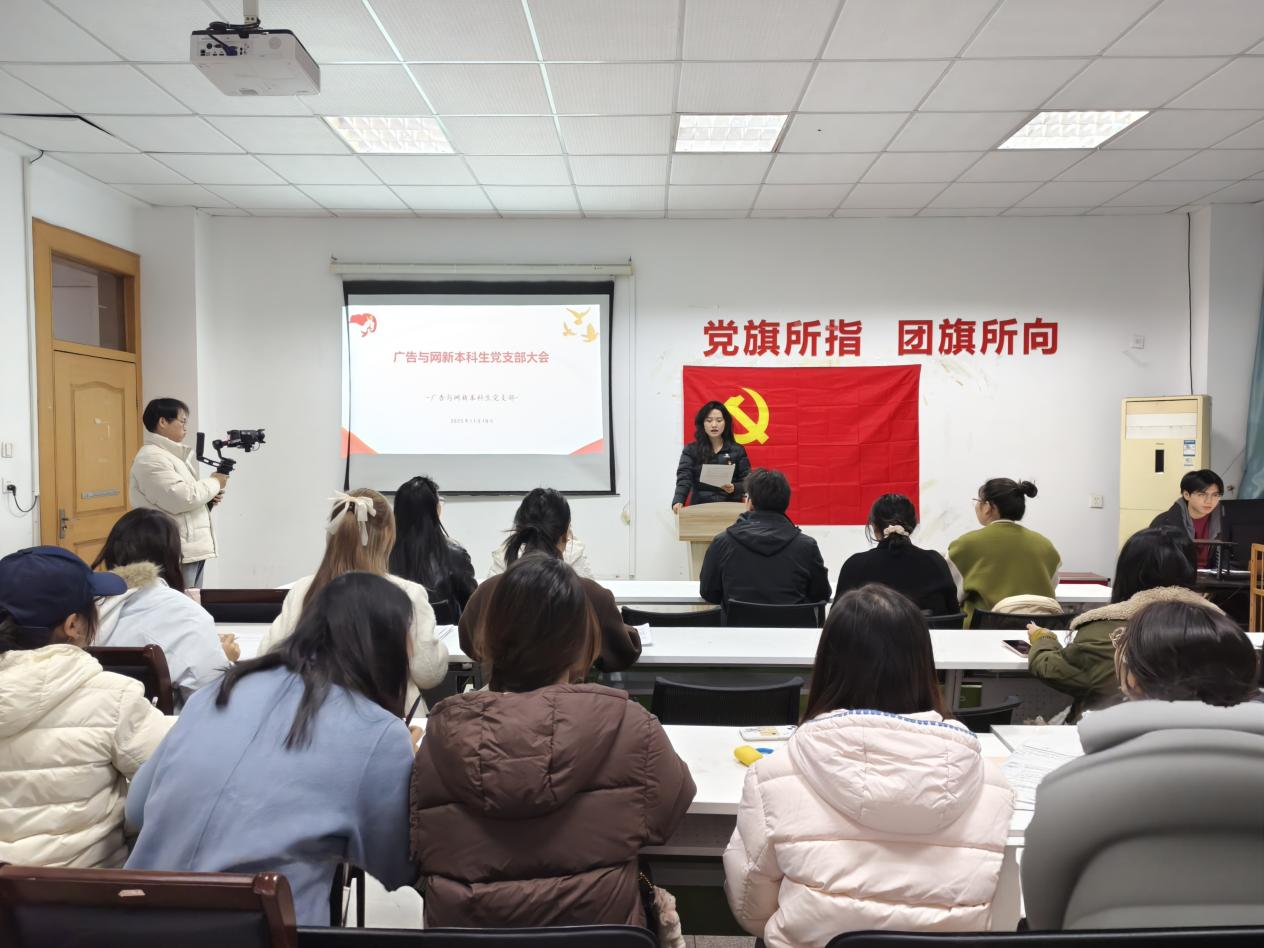 11月18日,新闻与传播学院广告与网新本科生党支部在学院三楼302会议室召开支部大会,讨论接收唐艺彰等9名发展对象为预备党员、刘雅玟等5名预备党员转为正式党员并开展十一月理论学习。会议由支部书记李梦圆主持,党委委员吴青山列席参会,支部全体成员参会。