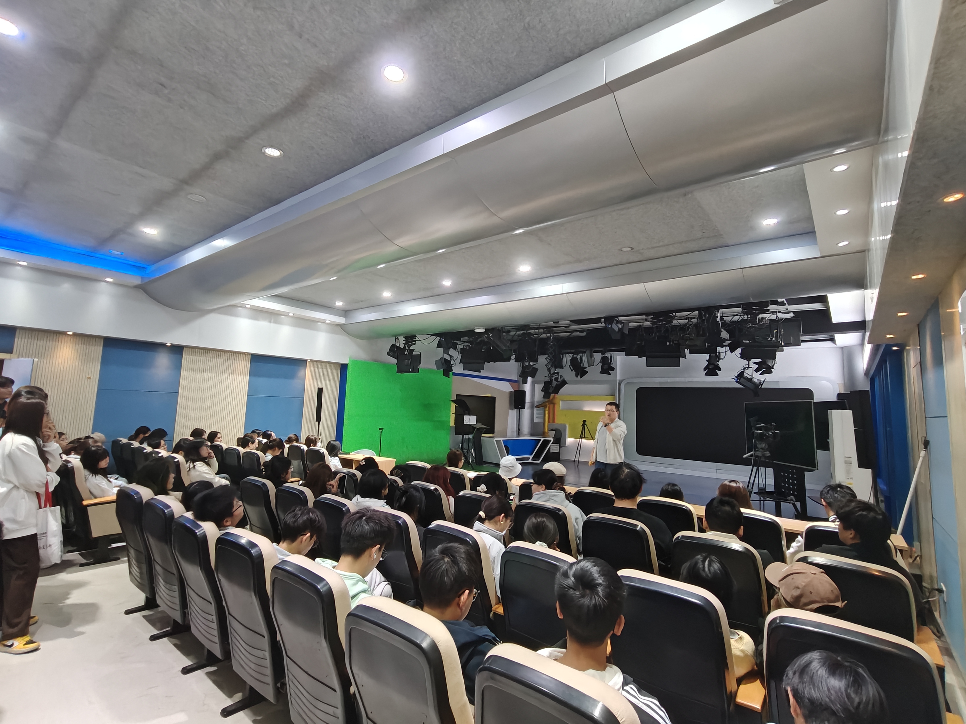 通过主题班会了解了安全理论知识后,学院紧接着开展了实地参观学习活动,让学生们在实践中进一步强化安全意识。11月14日,学院组织2025级三个专业全体新生联合开展实验室参观活动,由项一挺、刘佳老师分别带队,各班组织委员与团支书协同组织,带领新生同学们了解各实验室的定位及用途。参观中,项一挺老师首先强调,实验室安全是教学科研顺利开展的前提,规范操作是对每位同学人身安全的负责。随后,同学们分批参观了学院3号、4号楼的摄影棚、播音实训室、新媒体交互实验室等专业场所。项老师结合设备特点,详细讲解操作规范、预约流程及应急处置措施,重点强调用电安全、设备保管、防火防盗等关键环节,让“安全第一、规范操作”的理念深入人心。通过实地走访与现场讲解,同学们对今后将使用的实验场所建立起直观认知,安全防范意识和责任意识显著提升。