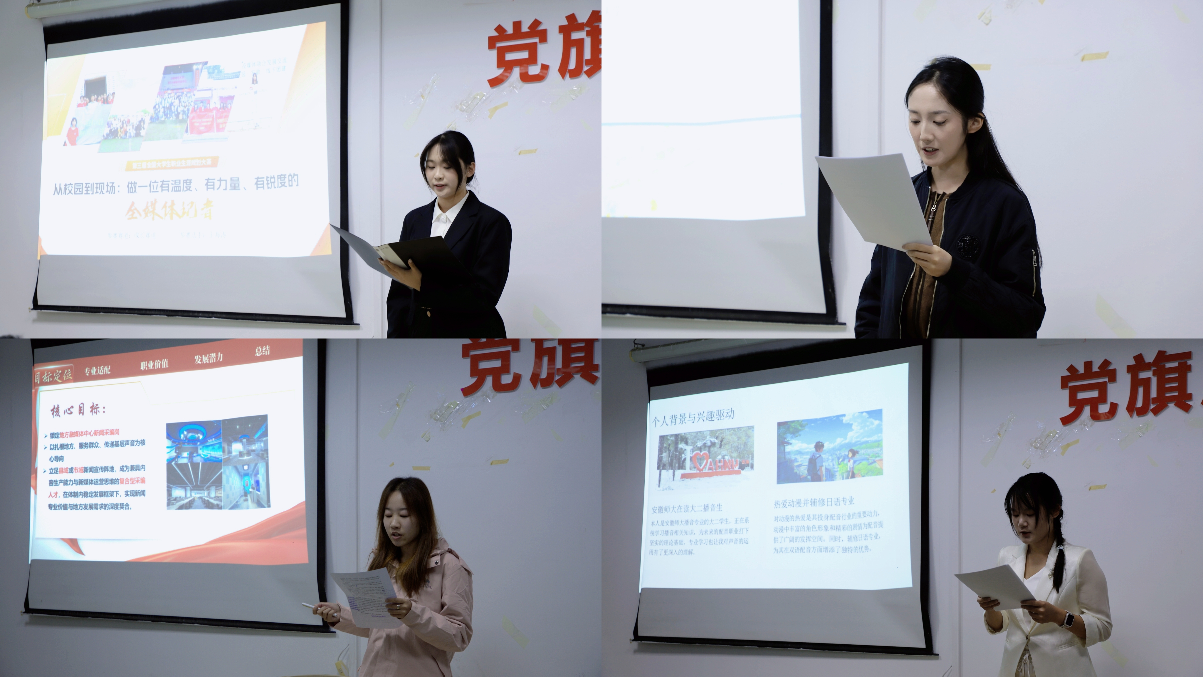 经过前期班级选拔,此次共14位选手脱颖而出。比赛分为就业赛道和成长赛道,选手通过PPT展示与现场答辩,从自身经历、奋斗道路等方面阐述各自的职业理想与规划。他们立足专业背景,结合国家发展趋势,充分展现新传学子深厚的专业积累与前瞻性的规划能力。比赛最后,刘成俊就选手的主题与汇报内容进行点评,肯定他们想法的同时也指出不足,他鼓励选手发挥专业基础,明确清晰的职业目标,在汲取经验,完善自我的过程中不断前行。