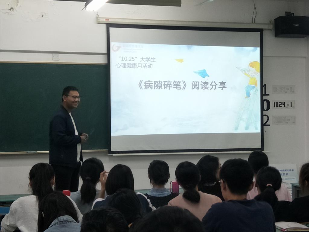 最后,有同学上台分享《病隙碎笔》读后感,史铁生用生动而通俗甚至是优美的语言追寻和探索了关于我们人生的书籍和未知的道理,其中就有谈到健康的心态的论述,班级同学通过分享阅读,彼此间对于心理健康有了更深的理解。